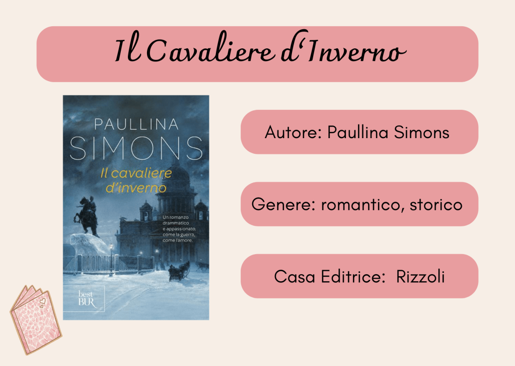 Uscito nel 2012, Il Cavaliere d’Inverno racconta dell’inizio dell’amore di Tatiana e Alexander, coppia che sboccia durante l’assedio di Leningrado del 1941. Giovane inesperta lei e ufficiale dell’Armata Rossa lui, tra i due nasce un sentimento che fin da subito vede mille difficoltà legate anche al passato del giovane, ma fin dall’inizio una cosa è certa: non importa le difficoltà e le ristrettezze, il destino ha messo Tatiana e Alexander sullo stesso sentiero e nulla è più forte del loro amore. Ho iniziato questo libro un paio di anni fa ma l’ho interrotto a causa degli studi; ora che mi sono laureata e ho molto tempo libero rispetto a prima, voglio assolutamente terminarlo!