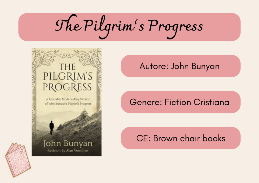 Non ho mai letto fiction cristiana prima di quest’estate, quando ho scoperto delle content creator americane che ne parlavano; in realtà non ne sospettavo nemmeno l’esistenza, ma dopo aver visto alcuni reel mi sono decisa a provare qualcosa e ho iniziato a cercare qualche titolo interessante, ma nessuno mi attirava particolarmente (non amo molto i romanzi d’amore, e i titoli chr ho trovato parlavano quasi solo di questo). Il tutto fino al Sinodo della mia chiesa, questo agosto, quando parlando con il mio pastore ho fatto la scoperta di The Pilgrim’s Progress; avendolo trovato in ebook a un prezzo stracciato ho deciso di acquistarlo, e ora è finalmente giunto il momento di leggerlo!
