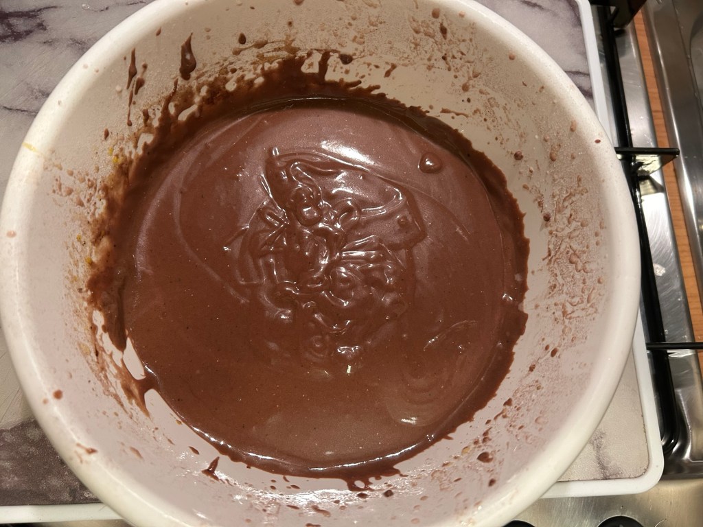 Di seguito aggiungiamo le polveri: il lievito per dolci, il cacao amaro (circa un cucchiaio) e la farina setacciata. Prima di aggiungere anche i liquidi preferisco sempre mescolare tutti gli elementi solidi con la frusta a mano o con un mestolo, perché in questo modo, nonostante le dosi già definite di olio e latte, posso capire se potrei averne bisogno in quantità maggiore o minore.