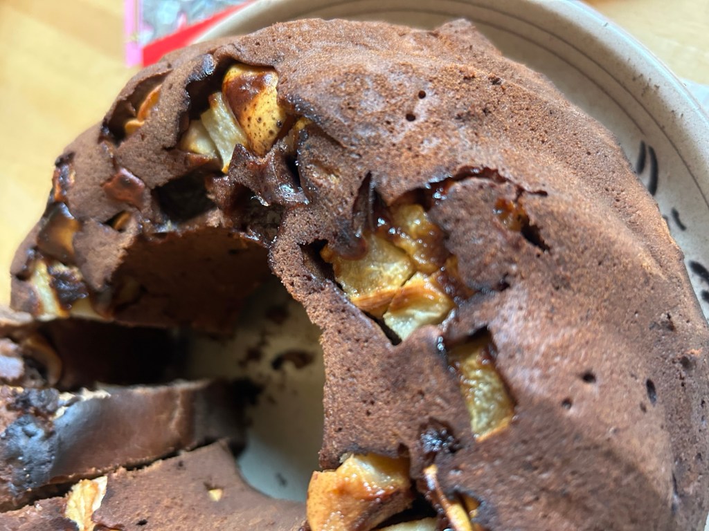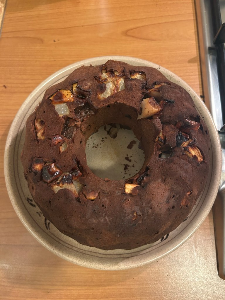 Ora io ignoro il motivo per cui questa canzone mi sia tornata in mente, ma tanto è bastato per darmi l’illuminazione mentre sceglievo qualche nuova forma per torte comprare. Non ho onestamente idea se la torta in questione fosse con base di frolla o avesse otto piani, ma io ho pensato che da piccola, dopo una giornata infernale, avrei avuto gioia nel mangiare un ciambellone pere e cioccolato preparato dalla mia nonna.