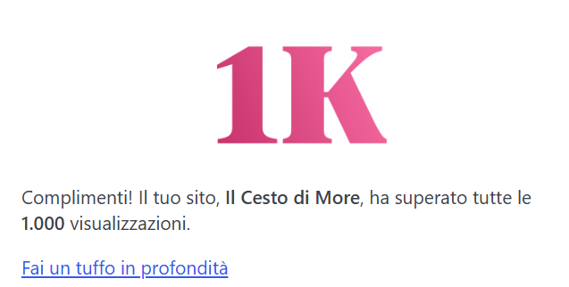 Questo pomeriggio ho ricevuto una bellissima notifica: il mio blog ha raggiunto 1000 visualizazioni!