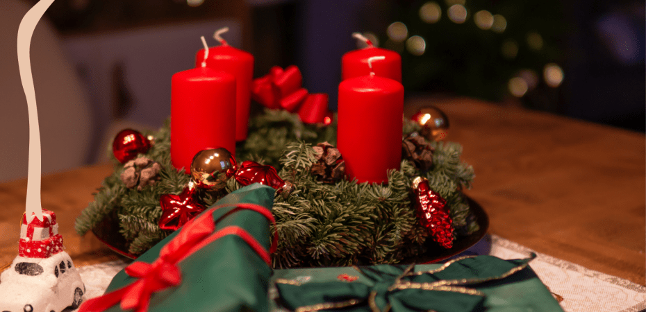 - 4 candele rosse, che rappresentano l’amore connesso con il servizio domenicale;